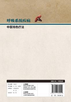 图书简介 | | 本书以中医特色疗法为核心,在介绍呼吸系统疾病的病因病机、临床表现、辅助检查、诊断及鉴别诊断的基础上,对呼吸系统疾病中医特色疗法进行了论述,其中包括辨证论治、特色专方、中药成药、雾化吸入、体针治疗、耳针治疗、穴位敷贴、穴位按摩、穴位注射等特色疗法,结合编者组对呼吸系统疾病临床诊疗的经验,于每一章节篇末进行特色疗法述评,对目前中医中药的临床运用状况、特色之处,中西医各自的特点等方面全面评议。 |