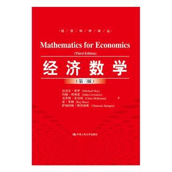 图书简介 | | 本书是一部经典的“经济数学”教材,在最新的第三版中全面地展示了经济学分析中所要运用的数学。本书涵盖极限与连续性、一元函数的微积分、线性代数、多元微积分以及动态问题。 |