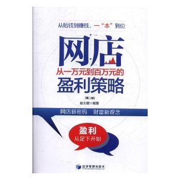 图书简介 | | 本书针对网店经营的14个盈利策略进行注意分析,循序渐进,引导网店经营者去了解网店经营的奥秘。本书是一本网店经营者盈利的实用“教材”,书中汇集了许多成功经营网店经营者在选货源、销售推广、服务等多方面的经验和技巧。通俗易懂,条例清晰。所谓“小技巧蕴含大智慧”,只要网店经营者能够掌握并且灵活运用这些盈利策略,一定能够让自己的网店深入人心,利润增长。 |
