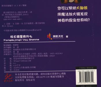 图书简介 | | 本书专门为0-3岁宝宝量身定做的益智类玩具书,锻炼宝宝的手脑结合能力,趣味认知,提高记忆力和观察力。本书中你可以帮助大脚熊用魔法放大镜发现神奇的昆虫世界吗? |