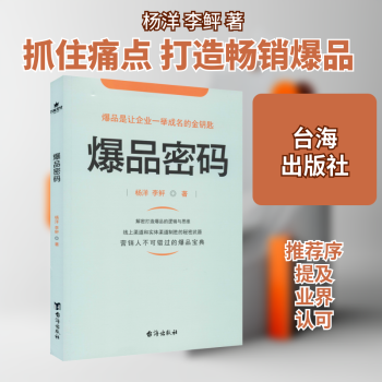 图书简介 | | 企业如何做爆品?要从什么方面入手?为什么企业做爆品会失败?是什么原因造成的?针对这一系列的问题,杨洋在书中会为你一一细说。她详细地讲解了企业做爆品的注意事项,结合生动的案例,从爆品的基础,文案,营销,打造超级IP等,教你如何在打造爆品的过程中克服困难。 |