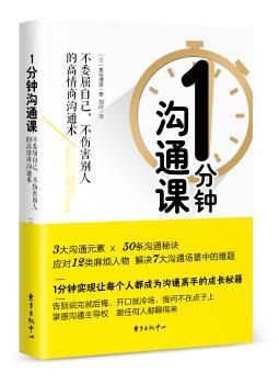 图书简介 | | 日本高人气“1分钟沟通大师”鱼住理英,结合自己多年电视台工作经验以及语言设计培训经验,首次揭秘自己的“鱼住式”沟通法。从听、说两个方面着手,通过风趣幽默的语言、实用可行的技巧,告诉读者在面对不同的私人交往难题、职场沟通困境时,到底应该怎么办,帮读者打破沟通僵局,成为沟通高手。 |