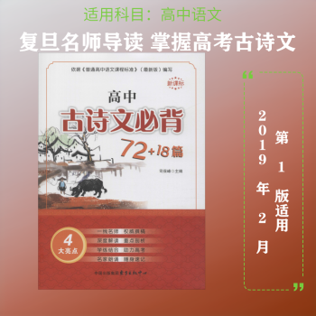 图书简介 | | 本课标要求掌握的72篇古诗文,同时根据高考常考古诗文篇目,增补了另外18篇,全书共计90篇。书中栏目设计丰富,有作品原文、注释、直译、古诗文赏析、核心素养解读、高考链接等栏目,同时配有名家朗诵,实现随身速记。 |