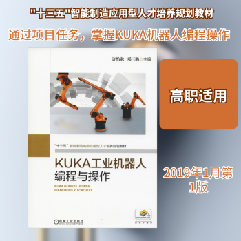 图书简介 | | 本书以北京华航唯实有限公司工业机器人实训系统为平台,基于“项目引领、任务导入”理念安排教材内容,共分为KUKA工业机器人手动操作、KUKA工业机器人坐标系测量、KUKA工业机器人搬运编程与操作、KUKA工业机器人涂胶编程与操作、基于RobotArt KUKA工业机器人离线编程五个项目。 |