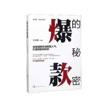 图书简介 | 本书内容共分为三大部分:第一部分从爆款时代,爆款只为颠覆而生出发,从爆款思维、爆款要素、爆款的秘密入手,深度阐述爆款的秘密;第二部分主要介绍爆款的运营流程,全面解读打造杀手级爆款的玄机,包括爆款定位、创意设计、品牌引爆、盈利模式、品牌推广、流程打造几个方面,手把手教读者爆款打造的实操技巧;第三部分主要是爆款典范鉴赏,全面分析那些“NO.1”品牌的爆款逻辑,并从其中挖掘标杆企业打造爆款的策略和方法。 |