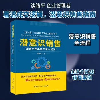 图书简介 | | 本书即以人们思想中的“潜意识”为理论基础,从能力、价值观、信念三大版块展开,形成了一套完整的销售流程与方法。全书在理论讲解的同时,附有大量销售实例与分析,深入浅出地对潜意识销售进行了全方位的论述和解析,对实际从业者具有极高的指导作用,是销售技巧的另一种新形式。 |