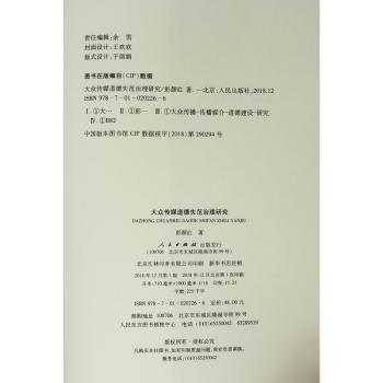 图书简介 | | 本书分别从大众传媒与道德的相互作用、大众传媒道德失范的表现和原因、治理机制、积极构建道德传媒以及大数据时代大众传媒道德失范的治理这五个章节切入,站在马克思主义的立场上,以当代大众传媒的道德建设情况为研究对象,在搜集并整理了大量资料的基础上,深入分析和研究了大众传媒发生道德失范的各种表现及其产生这些问题的原因,有针对性地提出了治理大众传媒道德失范、加强大众传媒道德建设的解决思路与尝试,对大数据时代下道德失范治理作了有益的思考,并进一步探讨道德传媒的构建思路与实现路径。 |