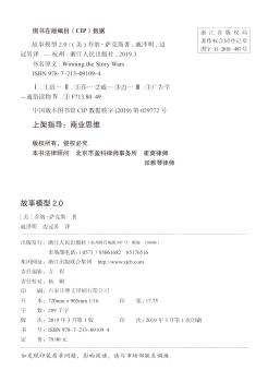 图书简介 | | 本书分故事模型1.0为什么失效了、四步打造故事模型2.0。内容包括:成功在于讲出伟大的故事;导致故事失败的五宗罪;当故事成为每个人的秘密武器;“制造焦虑+推出解决方案”的故事黑魔法;确定故事的核心价值观等。 |
