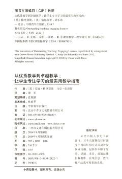 图书简介 | | 本书共6章,内容包括:让学生全身心专注于学习、开展有创意的高效教学活动、激发学生专注力的教学技巧、令学生着迷的课堂游戏、让你的课堂变得与众不同、如何达到卓越。 |