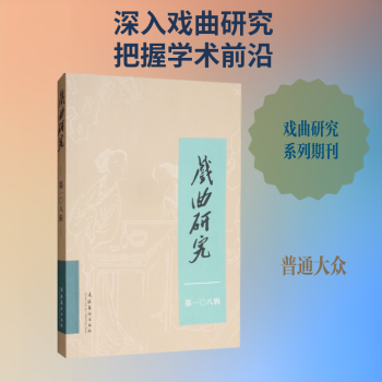 图书简介 | | 《戏曲研究》第108辑下设现代戏剧的创造与发展、戏曲表演与身段谱研究、深度访谈、戏曲史、地方戏研究、学术动态6个专题,文章有《京剧<白蛇传>经典性的内在构成》《田汉南国社时期剧本创作论》《“五四”回望:论20世纪四五十年代田汉的戏剧批评》《清代中后期戏曲表演理论的演进》等。 |
