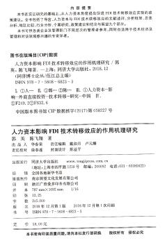 图书简介 | | 本书在实证研究的基础上,从人力资本角度提出促进FDI技术转移效应实现的政策建议。全书包括了导言、人力资本与FDI技术转移效应的文献述评、分析框架、总体分析、地区比较、行业分析、个案研究、政策建议和结论与展望九个部分。 |
