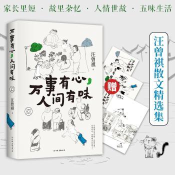 图书简介 | | 本书是一本汪曾祺先生的散文集。汪老先生写字、画画、做饭,把普通的日常活得有情趣,并把他对生活的热爱通过一字一句传达给世人。通过他的文字让人体会到,生活就是美好的,人是有诗意的。读他的散文也能透过汪曾祺的视角,将生活里每一处细小的平凡变得美丽烂漫。 |