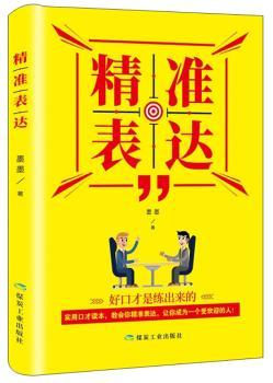 图书简介 | | 虽然现在很多人都已经知道了说话的重要性,但真正能够精准表达的人却很少,很多时候,我们的失败往往还是输在了说话上。十分常见的现象就是说话找不到的重点,往往是滔滔不绝地说了一大堆,可听者却听得云里雾里,不知所云。《精准表达》一书将指导不会精准表达的你如何去掌握说话的技巧,从而让你在他人面前镇定自若,在生活与工作中左右逢源,在人际交往中大显身手。 |