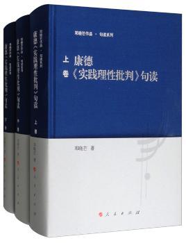 图书简介 | | 本书采用逐字逐句地在课堂上解读研讨方式,根据录音整理为本书稿,其对研究康德具有重要的参考价值和学术价值。我社曾出版邓晓芒教授的三部句读,均得到广大读者的欢迎,有很好的销量。这种解读方式提供了一个理解经典的平台,对读者研读经典有极大的帮助。全书约为150万字,分上中下三卷精装。 |