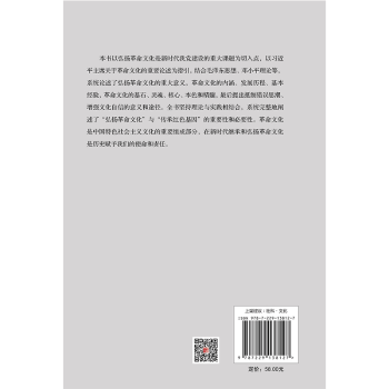 图书简介 | | 本书以弘扬革命文化是新时代我党建设的重大课题为切入点,以习近平主席关于革命文化的重要论述为指引,结合毛泽东思想、邓小平理论等,分10章系统论述了弘扬革命文化的重大意义,革命文化的内涵、发展历程、基本经验,革命文化的基石、灵魂、核心、本色和精髓,最后提出抵制错误思潮、增强文化自信的意义和途径。全书坚持理论与实践相结合,系统完整地阐述了“弘扬革命文化”与“传承红色基因”的重要性和必要性,以及革命文化的方方面面,对当前社会主义先进文化建设和革命文化传承,有重要的指导和借鉴意义。 |