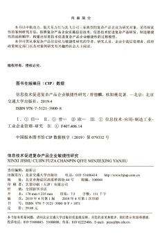 图书简介 | | 本文在综合运用企业敏捷性、组织IT能力与复杂产品等理论的基础上,分别对中航动力、东方红与沈飞公司三家典型的复杂产品企业进行案例研究,内容包括:文献综述与理论框架;研究设计;复杂产品企业实施信息技术过程研究等。 |