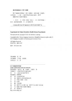 图书简介 | | 本书有20项实验,各类实验配有插图和图解,便于抓住学生注意力,直观地传递信息。内容包括:健康饮食和健康计划;健康食物的选择;自尊心;测量血压;在多年部位测量脉搏;神经敏感性测试研究等。 |
