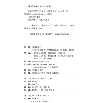 图书简介 | | 为什么销售同样的商品,有些销售员业绩惨淡,有些却业绩不凡?为什么有些销售员总是遭到客户的厌恶,有些却能和客户打成一片?这其中的奥秘,就在于一张嘴。正所谓,“一人之辩,重于九鼎之宝;三寸之舌,强于百万之师”。销售任何东西,总会遇上一些看似无法解决的问题,我们称之为”黑暗地带”。然而,一旦跨过去了,成功便触手可及,订单就能手到擒来。本书将告诉你如何实现跨越,如何将话说到客户心里去,继而将产品顺势推销出去。 |