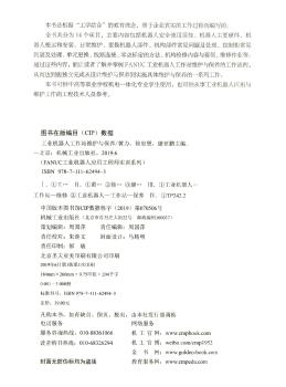 图书简介 | | 全书共分为十四个项目,主要内容包括机器人安全使用须知、机器人主要硬件介绍、机器人搬运和安装、日常维护、更换机器人部件、机构部件常见问题及处理、控制柜常见问题及处理、单元更换、线路连接、零点标定的方法、机构检修内容与要领、维修作业等。通过这些内容,能让读者了解并掌握FANUC工业机器人工作站维护与保养的工作流程,从而达到能独立完成从设计、维护、保养到实施具体维护与保养的一系列工作。 |