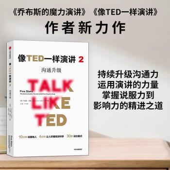 图书简介 | | 本书介绍了从科学家、创业者、专业人士、领导者、TED演讲明星这些顶级沟通者身上学习有效沟通的秘诀:如何用故事触发情感、三幕式故事结构、风投公司的5秒钟原则、少即是多的原则、类比思维、记忆点,等等,这些方法将加速你的升级过程,无论是在职场还是在生活中。 |