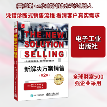 图书简介 | | 本书分为解决方案销售的概念、创造新机会、抓住活跃机会、评估、控制、结案、流程管理五篇,主要内容包括:解决方案;原则;销售流程;拜访前的规划与研究;激发兴趣;定义痛苦或关键业务问题;先诊断,后开方;创建偏向解决方案的构想;如何后来者居上等。 |