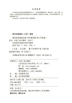图书简介 | | 本系列教材分三部分,每部分单独成册。其中,组织建设篇收录案例25个。这些案例,紧跟形势、紧贴实际、紧扣主题,充分展示了油田各级党组织在加强党建工作方面的深入探索和生动实践,具有很强的操作性、借鉴性和推广性。 |
