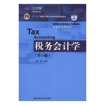 图书简介 | | 本书以我国现行税法和会计准则(制度)为法规依据,基于税务会计与财务会计适度分离的原则,系统地阐述了税务会计理论结构和纳税基础;以增值税会计、所得税会计为重点,分述符合税法要求的各税种会计的确认、计量与申报;在会计记录环节,按税务会计与财务会计混合模式予以阐述。本书的框架结构既符合我国会计实务的现状,同时又在理论上将两种会计进行了明确界定。第13版根据我国税务法律法规会计准则的最新变化与要求做了比较全面的调整,是目前市场上更新率最快的教材之一。 |