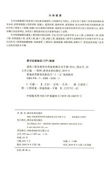 图书简介 | | 本书以检测项目为核心,主要介绍了建筑工程质量检测的基本知识,砂浆和混凝土用原材料、混凝土、建筑砂浆、墙体材料、建筑钢材、防水材料等相关性能检测,同时介绍了简易土工检测、混凝土抗压强度实体检测、基桩桩身完整性检测等项目的主要检测方法、操作步骤以及结果判定,并结合工程经验对有关注意事项进行了说明。 |
