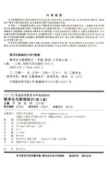 图书简介 | | 本书分两部分,第1-5章是概率论部分,包含了随机事件及其概率、随机变量及其概率分布、二维随机变量及其概率分布、随机变量的数字特征、大数定律与中心极限定理;第6-8章是数理统计部分,包含了样本及其分布、参数估计、假设检验。 |