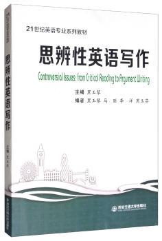 图书简介 | | 将该教材将“问题化”(problimatization)策略、综合性分析能力、批判性思维能力、个人视角或观点的表达等作为写作的重点,通过写作活动,掌握英语论辩写作的思维方式、语篇组织模式或体裁知识,树立读者意识。 |