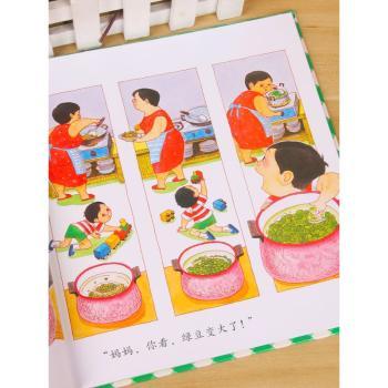 图书简介 | | 阿宝喜欢和妈妈去买菜。他每一次都说:“妈妈,买绿豆。”“阿宝,到家啦!别玩了。”“妈妈,快点!煮绿豆。”…… |
