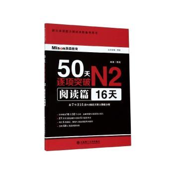 图书简介 | | 本套书为N2级别考试辅导书,与50天N5N4N3形成一个大的系列,另外还有N1级别。借助50天N5N4N3良好的口碑及营销模式基础上,补充了N1和N2的品种。本套书为N2级别分项讲解训练。本书对N2阅读题型进行梳理。以阅读习题和讲解为主。主要教给学生N2阅读题的解题思路。 |