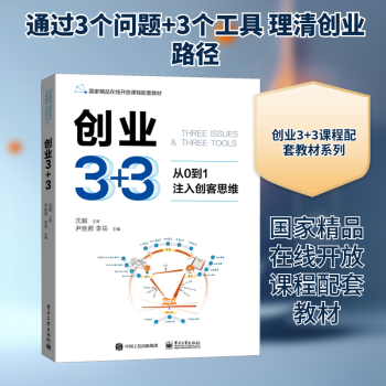 图书简介 | | 本教材对应《创业3+3》慕课的课程内容,是一本面向工科学生的创业通识类教材。1.经典创业理论贯穿本教材是一门创业基础通识课,用经典蒂蒙斯创业过程三要素模型贯穿课程始终, 无论是否创办企业,把握平衡协调“商机”、“资源”、“团队”三要素的理念,都能达成事半功倍的效果。2.3个问题+3个工具本教材用3个工具:“个人商业模式画布”、“精益创业法”、“复盘”来破解3个问题:“我能创业吗?”、“我怎么创业?”、“我在创业中能提升什么?”。 |