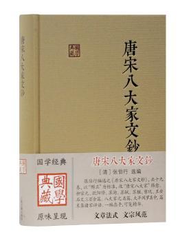 图书简介 | | 张伯行编选之《唐宋八大家文钞》,以“醇正”二字为标准。共十九卷,收“唐宋八大家”韩愈、柳宗元、欧阳修、苏洵、苏轼、苏辙、曾巩、王安石的文章共316篇。内容包括:论佛骨表;论今年权停举选状;上张仆射书等。 |