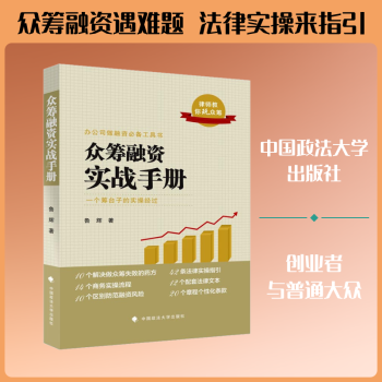 图书简介 | | 本书作者把众筹分为“线上众筹”和“线下众筹”两类,“线上众筹”主要以“十部委”发布的《关于促进互联网金融健康发展的指导意见》为依据;“线下众筹”主要以《公司法》《证券法》等法律为依据。在法律实操方面,主要是介绍发起众筹项目需要准备哪些法律文本等,为项目做配套服务;并介绍做众筹的实操步骤以及应具备的各种条件等,特别是作者原创了12个法律范本和写法,例如公司章程的写法、发起人备忘录、商业计划书、认股协议书、股权代持协议等文件的写法和范本等,对于众筹融资很有帮助。 |