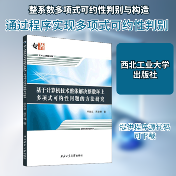 图书简介 | | 本书统首先介绍了通过构造一个与整数环上的多项式空间Z[x]同构的空间Q[r],通过利用Q[r]内向量的规律进行分类,对整数环上多项式的可约性进行整体研究的数学方法,在理论上实现一次性地将整数环上的多项式分别按可约和不可约进行分类,并按一定规律排序。然后通过计算机技术编程计算实现可约多项式(同时提供每个多项式的因式)和不可约多项式查询表的机器生成。 |