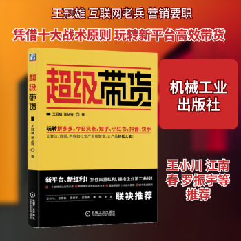 图书简介 | | 本书主要内容包括:什么是超级带货、四重红利:拥抱企业第二曲线、思维跃迁:从三个旧连接到三个新连接、社交即红利:拼多多的崛起之路、内容即产品:快手的内容温度等。 |