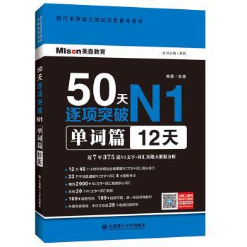 图书简介 | | 本书为N1单词篇,分配的天数为12天,整体4个分项加在一起为50天。书中针对考试题型进行讲解,以题型入手,让读者知道怎样去考试,怎样备考。书中对每一种题型进行介绍和分析,并将该题型中的题型介绍、考查重点、每一类别的规律和练习提高,最后还有模拟题供读者测试。 |