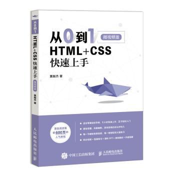 图书简介 | | 本书分为2大部分:第1部分是HTML基础,主要介绍各种标签的使用;第2部分是CSS基础,主要介绍样式操作。此外,本书还融入了大量的开发技巧,以便让读者打下坚实的基础。为了让读者更好地掌握,本书还结合实际工作以及前端面试,精心挑选了大量高质量的练习题。此外,本书还专门配套了课件PPT以及各种工具手册,以便各大高校老师教学使用。 |