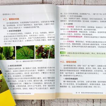 图书简介 | | 本书以图文并茂的方式,介绍了葡萄病虫害为害症状、快速鉴别方法、病害病原及发病规律、虫害生活习性及发生规律、虫害形态特征及病虫害的综合防治方法。全书内容详尽、科学实用、通俗易懂,非常贴合基层读者的需要。 |