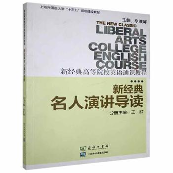 图书简介 | | 本书精选16篇近现代以来世界各个领域杰出人物的经典演讲词,旨在提高学生的英语语言审美能力以及英语语言文化意识。每篇设有背景介绍、难词讲解、文化导入、语言修辞、配套练习和延展阅读等部分,帮助学生充分理解演讲词原文,欣赏语言修辞之美,同时以演讲词为切入点,学习西方的历史与文化,并以此为基础,模仿、拓展、实践演讲词的风格与内容。 |