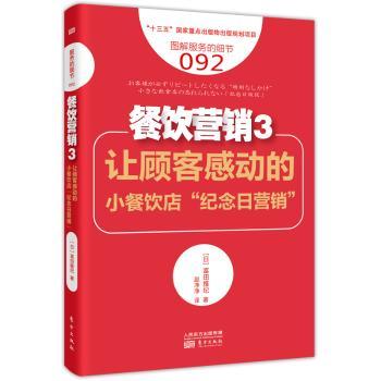 图书简介 | | 通过组合现有菜单创造新的特别方案,通过提供个性化菜单服务、纪念日摄影等服务,成为顾客不会忘记的“特别的店”。小餐饮店可以将自己的强项最大化的就是“纪念日营销”。本书通过介绍顾客名单的收集方法、集客方法、菜单制作、服务方面的新颖想法等,帮助顾客掌握实践“纪念日营销”的技巧。 |