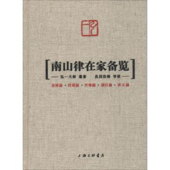 图书简介 | | 《南山律在家备览》是弘一大师本着一片悲心,在浩如烟海的南山宗律典中,扼要地择录出适合出家人学习的部分,辑为备览。本书选取其中的精华,且对初学者比较适合的部分来学习。全书共有五篇,分别是:宗体篇、持犯篇、忏悔篇、别行篇、讲义篇。 |