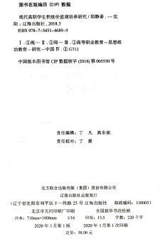 图书简介 | | 本书分五章,内容包括:高职院校学生价值观的现状特点及影响因素;高职院校价值观教育的重要性与特殊性;新时期高职院校价值观教育的内容及途径;高职院校学生职业价值观、成就动机与择业效能感的关系研究等。 |