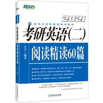 图书简介 | | 本书为新东方考研阅读首席主讲,“模糊阅读”理论体系创始人——李剑老师执笔,手把手教考生解读考研英语(二)试卷中的重点题型——阅读理解。本书精选适合用作考研英语(二)阅读理解的模拟题共60篇,为每篇阅读理解提供规范的中文译文,为每个题目提供详细的解析,包括每个题目在原文中的答案定位,各个选项的分析,以及每段的段落大意,并在每篇解析最后为考生总结难词和难句,让考生在练习中找感觉,总结解题经验。但是本书的宗旨并不在于讲清某一篇文章,也不在于一个一个地解决具体的问题,而是力图提出一套理论、一套主义,希望为读者带来一套完整的、不拘泥于具体某一篇题目的、能够以不变应万变的阅读理解解析方法。 |