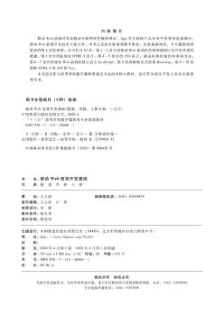 图书简介 | | 本书共分10章:第1-2章介绍移动Web前端的发展和现状以及开发环境的搭建;第3章介绍标准的HTML5语言;第4-5章介绍CSS语言,涵盖标准的属性和布局方法;第6-7章介绍移动Web前端的核心语言JavaScript;第8章讲解响应式框架Bootstrap;第9-10章讲解HTML5的API和Vue。 |
