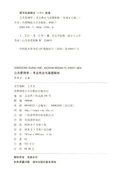 图书简介 | | 本书分为三部分,内容涉及公共管理学的视野、公共组织理论、政府改革与治理、政府间关系、政府作用、公共政策、绩效管理、人力资源管理、公共经济管理、战略管理、公共管理监督与伦理、政府工具、公共危机管理等。 |