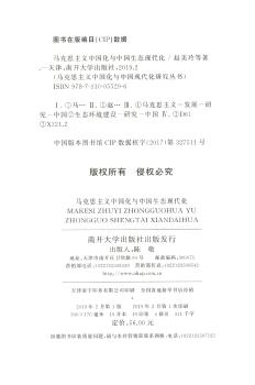 图书简介 | | 本书主要内容包括:马克思主义中国化、现代化与中华民族的伟大复兴、生态现代化与中国现代化模式的转型、马克思主义中国化与中国生态现代化互动发展、马克思主义生态思想的主要内容和当代价值、中国传统文化中生态思想的现代阐释、两方生态现代化理论与生态社会主义思潮及其评价等。 |