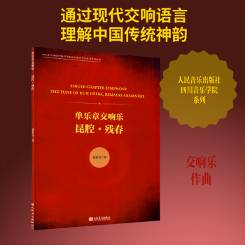 图书简介 | | 本书收录了两首单乐章交响乐作品《昆腔》和《残春》。《昆腔》的素材采自昆曲唱腔,通过乐队交响化语言的铺陈展延,音乐在蕴含中国传统戏曲古典神韵的同时,力图呈现当代音乐的审美思维和艺术气质。《残春》是通过作曲家记忆中风格迥异的音响碎片的衍变和发展,在让它们互相碰撞的同时又让它们交织融汇成整体乐章。作品尝试表现在大千世界万物生灵的外在物质形态及内在精神气质中所蕴含的残缺美。 |