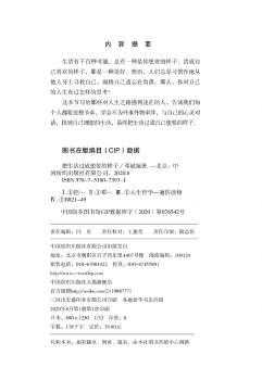 图书简介 | | 本书就是这样一本心灵智慧指南,它向我们传达了一种积极健康的生活理念,旨在引导我们打开自己的心灵,走入另一个我们未曾开启的只有自己的世界,试着帮助我们开启一种自己喜欢的人生,相信阅读完本书,你能对自己的生活有个新的认识,也会认识到如何提高生活质量,如何排解工作和生活压力,并开始热爱生活,把生活的过得鲜活热闹,趣味盎然。 |